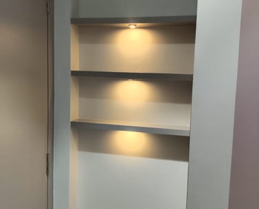 Accent Shelf Detailing: Illuminated niches and ornament placement that elevate the visual rhythm of the interiors.