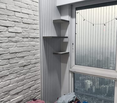 Custom Furniture & Storage: Wall-mounted desks, floating shelves, and sleek cabinetry that maximize space.